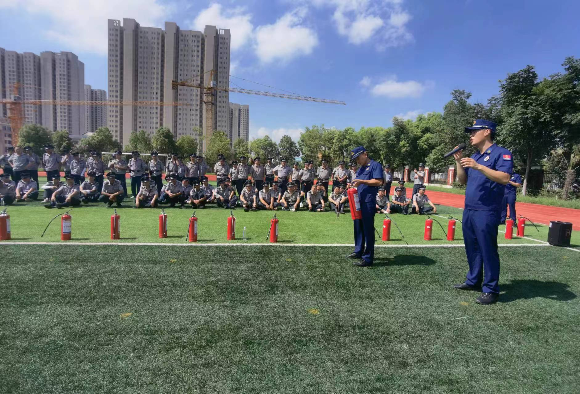 本次培训涵盖理论知识、队列训练、防暴器材使用及消防器材培训四个部分,教官采用理论与实操相结合的方式进行,县公安局、教体局高度重视,相关领导出席培训会并作了强调讲话。