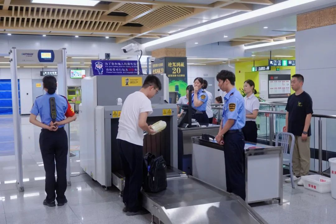 此次竞赛主要模拟不法人员携带违禁物品通过轨道安检口,以班组为最小作战单元,共同完成安检应急处置演练科目。