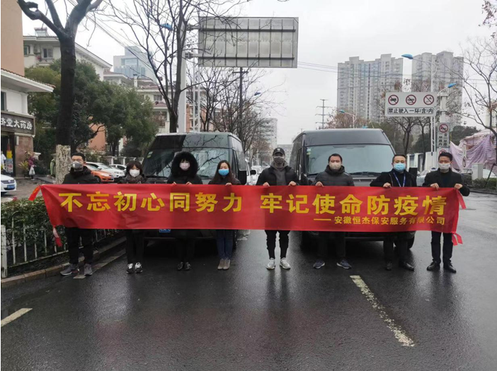 疫情就是命令,防控就是责任。安徽恒杰保安服务有限公司积极筹措资金,专项购买抗击肺炎疫情应急物资,其中口罩30000余个、医用防护服160余套、消毒水1.6吨、医用乳胶检查手套500余双、喷壶300余个,出动应急保障车辆30余台次。