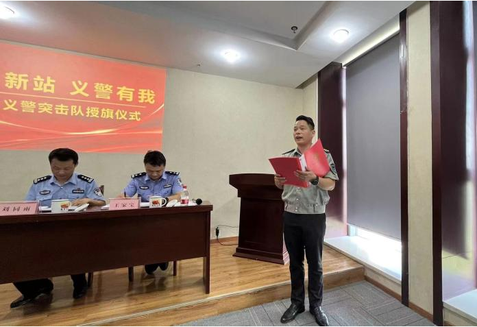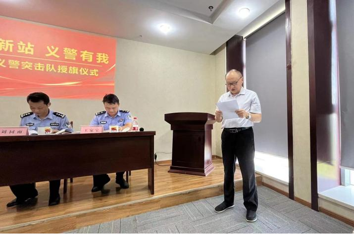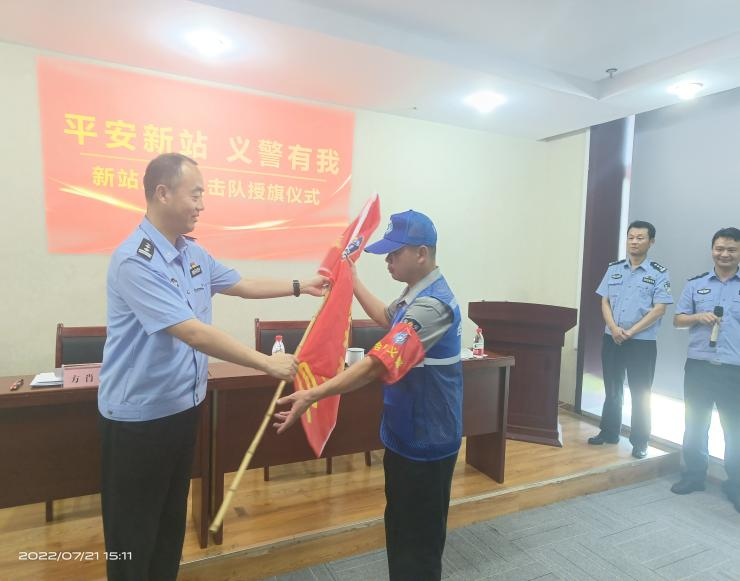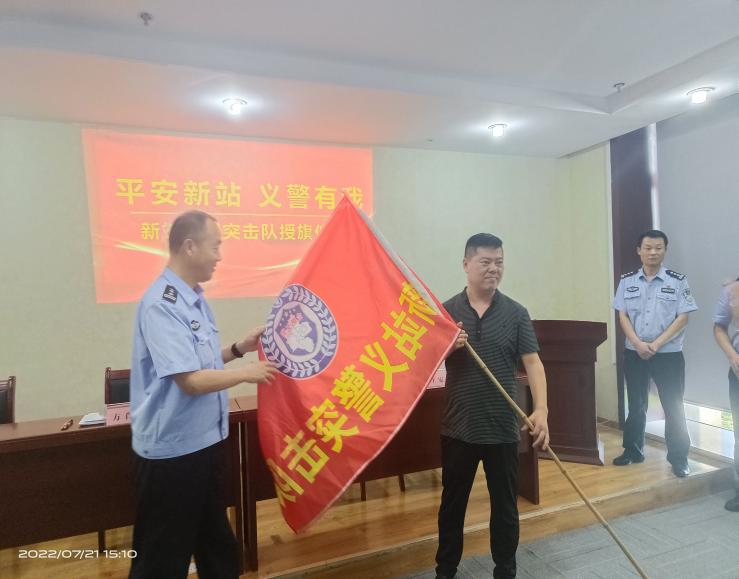 7月21日下午,合肥市公安局新站分局和辖区保安公司举行“新站义警突击队”成立暨授旗仪式,分局副局长方肖川,治安大队大队长刘同雨,副大队长王家宝及50名义警突击队员参加了授旗仪式,方肖川为强卫、山中山、中祥、合安4家保安公司授旗。