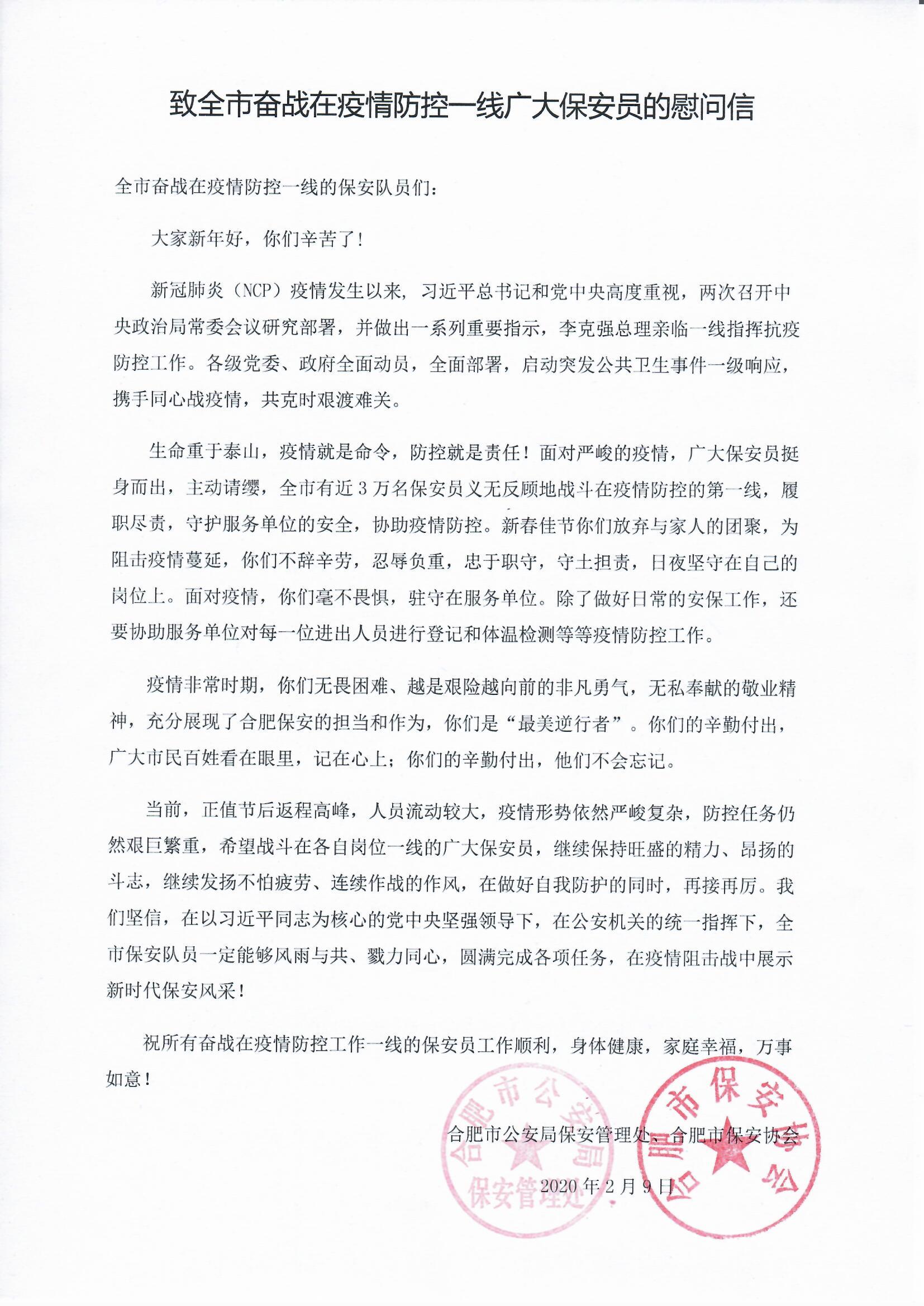 下一篇:携手同心战疫情 共克时艰渡难关—合肥市保安行业监管部门、合肥市保安协会各会员单位应战新型冠状病毒感染的肺炎疫情纪实