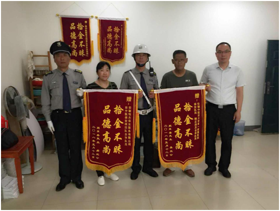 原来,吴先生和爱人离开后不久,安徽恒杰保安公司派驻保安队员顾正洪在巡逻时捡到这个包,“这是谁的包?”他一连喊了好几声,却无人应答。随后,他将包交给保安队长,并联系了保卫科科长。