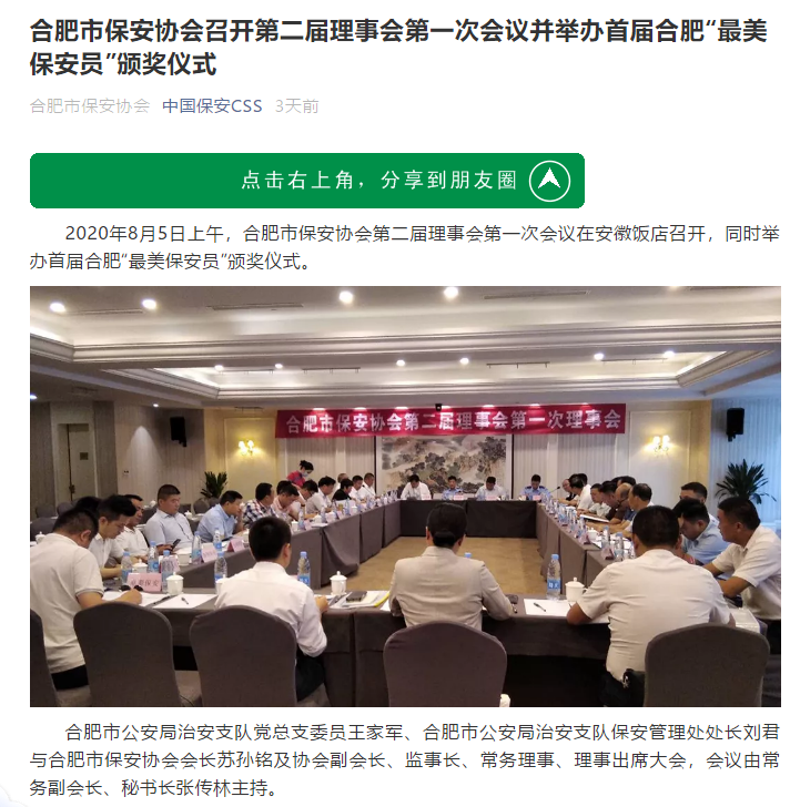 合肥市保安协会召开第二届理事会第一次会议并举办首届合肥“最美保安员”颁奖仪式